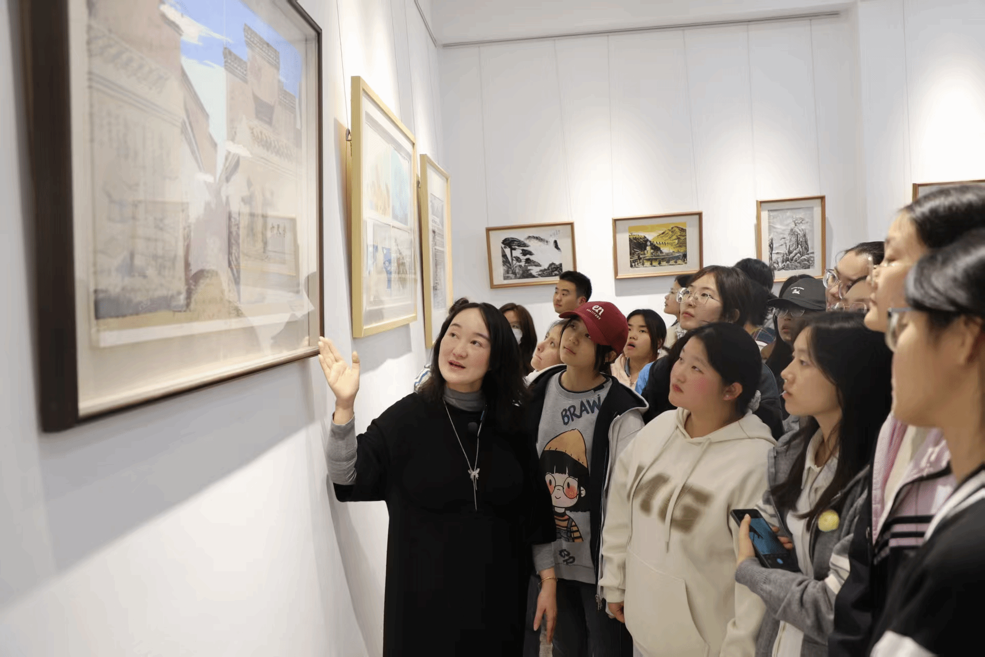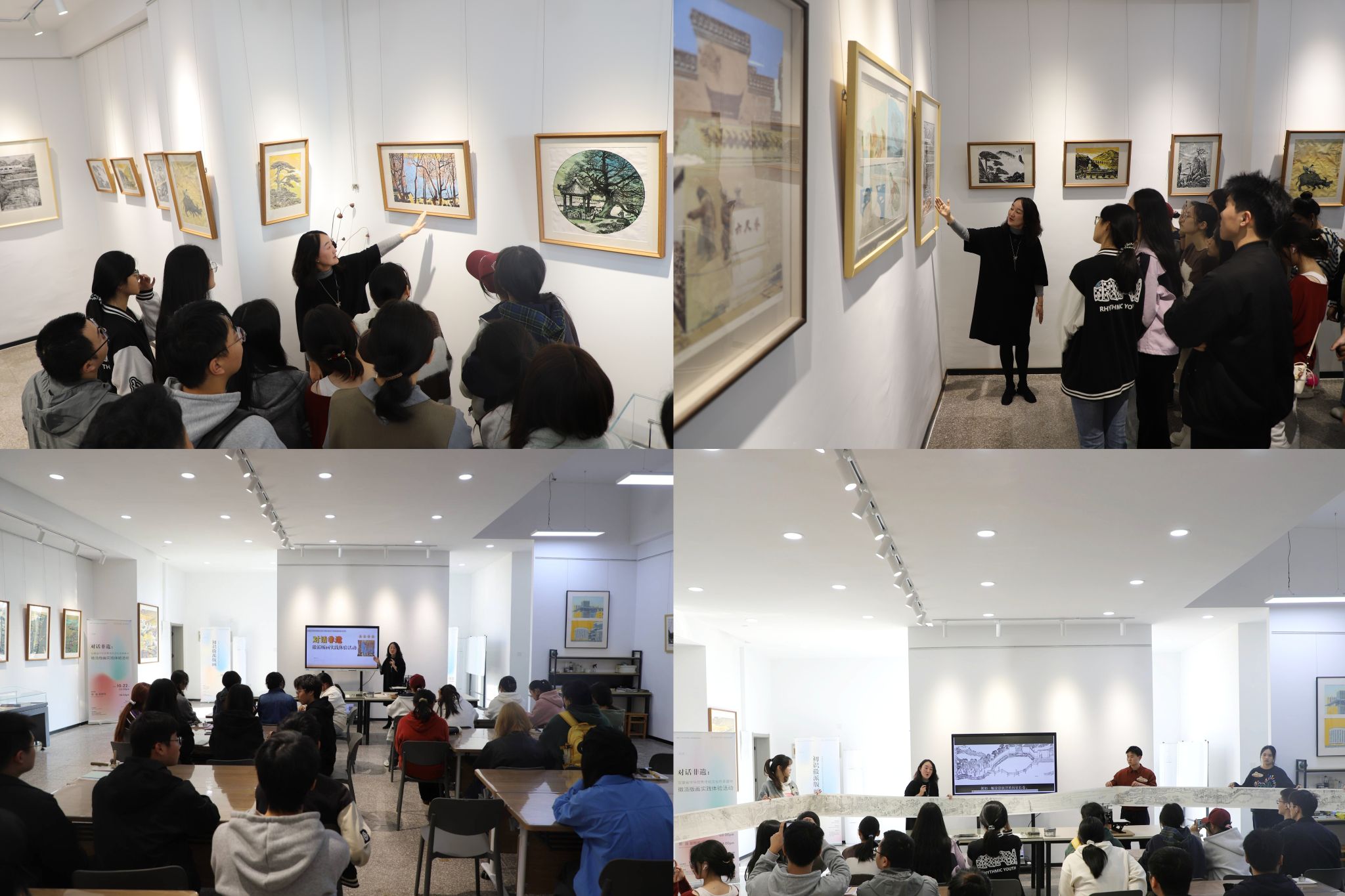 首场活动“初识徽派版画”如同一把开启艺术之门的钥匙,为不同专业的同学们系统梳理了徽派版画的辉煌历史、艺术特色与作为省级非物质文化遗产的厚重价值。通过一幅幅经典作品的展示与解读,引导同学们感受刀木碰撞间的匠心独运与黑白线条中的文化气韵。