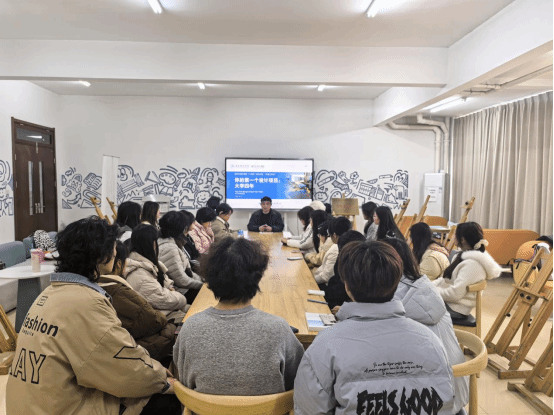 为精准对接视觉传达设计专业学生的学业发展需求,搭建师生深度交流的实践平台,12月2日,美术与设计学院在滨湖校区“一站式”学生社区美育共创空间成功举办第二场学业导师进社区导学活动。本场活动由视觉传达设计专业何磊教授担任导师,以“你的第一个设计项目:大学四年”为核心主题,凭借自身实践经验分享,吸引了30余名来自学院各年级的在校学生踊跃参与。