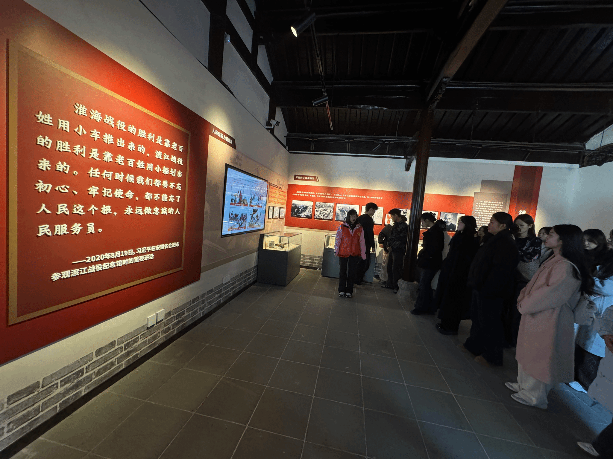 在渡江战役总前委旧址,全体党员通过视频影像、历史文献、实物展品及场景复原等多元载体,重温那段波澜壮阔的历史,回顾了渡江战役从战略谋划、周密部署到全面胜利的光辉历程,大家深入学习革命先辈在枪林弹雨中不惧牺牲的英雄事迹,深刻感悟革命先辈坚定不移的革命意志和崇高信仰。