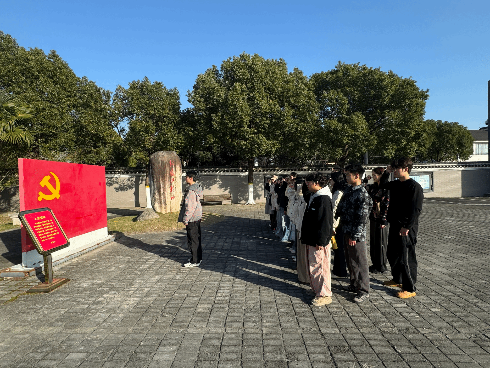 在纪念馆宣誓广场,全体党员整齐列队,在领誓人的带领下,新发展党员与老党员们面向党旗高举右拳庄严宣誓,铿锵有力的誓言响彻广场,表达了全体党员对初心使命的庄严承诺和继承革命传统、担当历史使命的坚定决心。